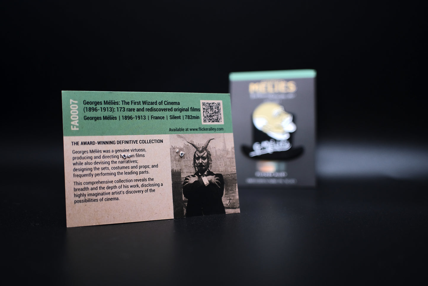 Flicker Alley is proud to present our first set of limited edition enamel pins, celebrating the incredible legacy of the first wizard of cinema, George Méliès. Exclusive to the Flicker Alley website, these soft enamel pins are available separately or can be bundled together for a discounted price. Collect them all before they're gone!